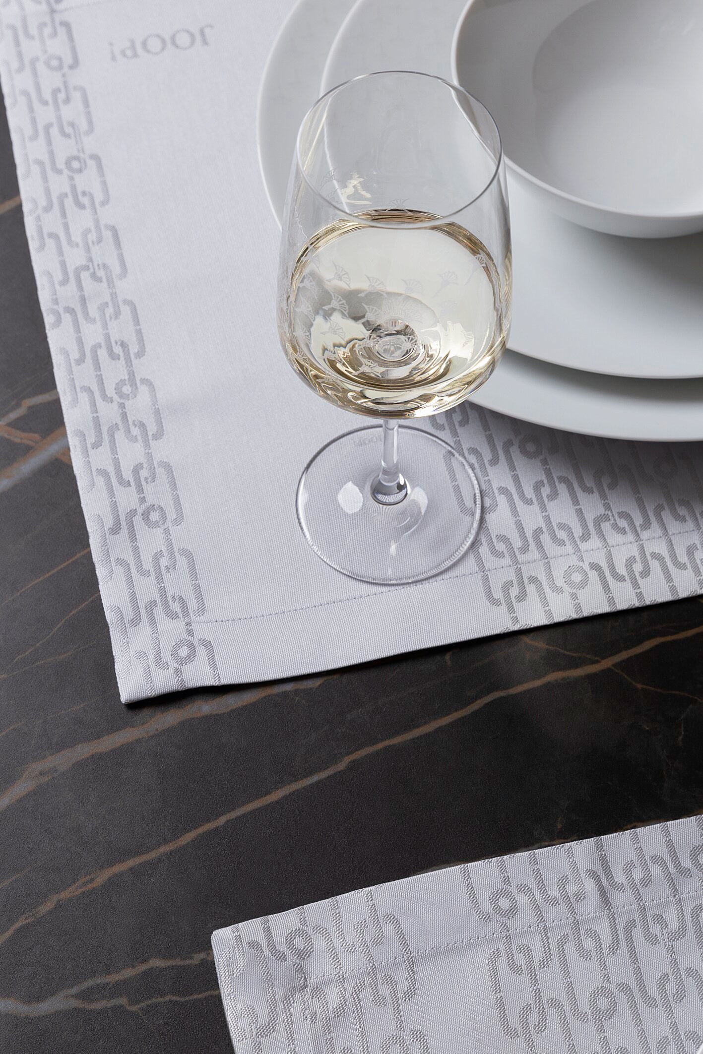 Hochwertig verarbeitete JOOP! CHAINS Platzsets in Halbzwirn-Qualität mit Baumwoll-Anteil und elegantem JOOP! Ketten-Streifenmuster. Dining in style: JOOP! DINING GLAMOUR umfasst ein komplettes Tafelservice, eine Bestecklinie, Kristallgläser sowie Tischwäsche, die dank prägnanter Linienführung die richtige Balance zwischen selbstbewusstem Charakter und subtiler Eleganz finden. Umgesetzt wird das ikonische Design in hochwertigen Materialien wie feinstem Porzellan, glänzendem oder satiniertem Edelstahl und transparent dekoriertem Kristallglas.