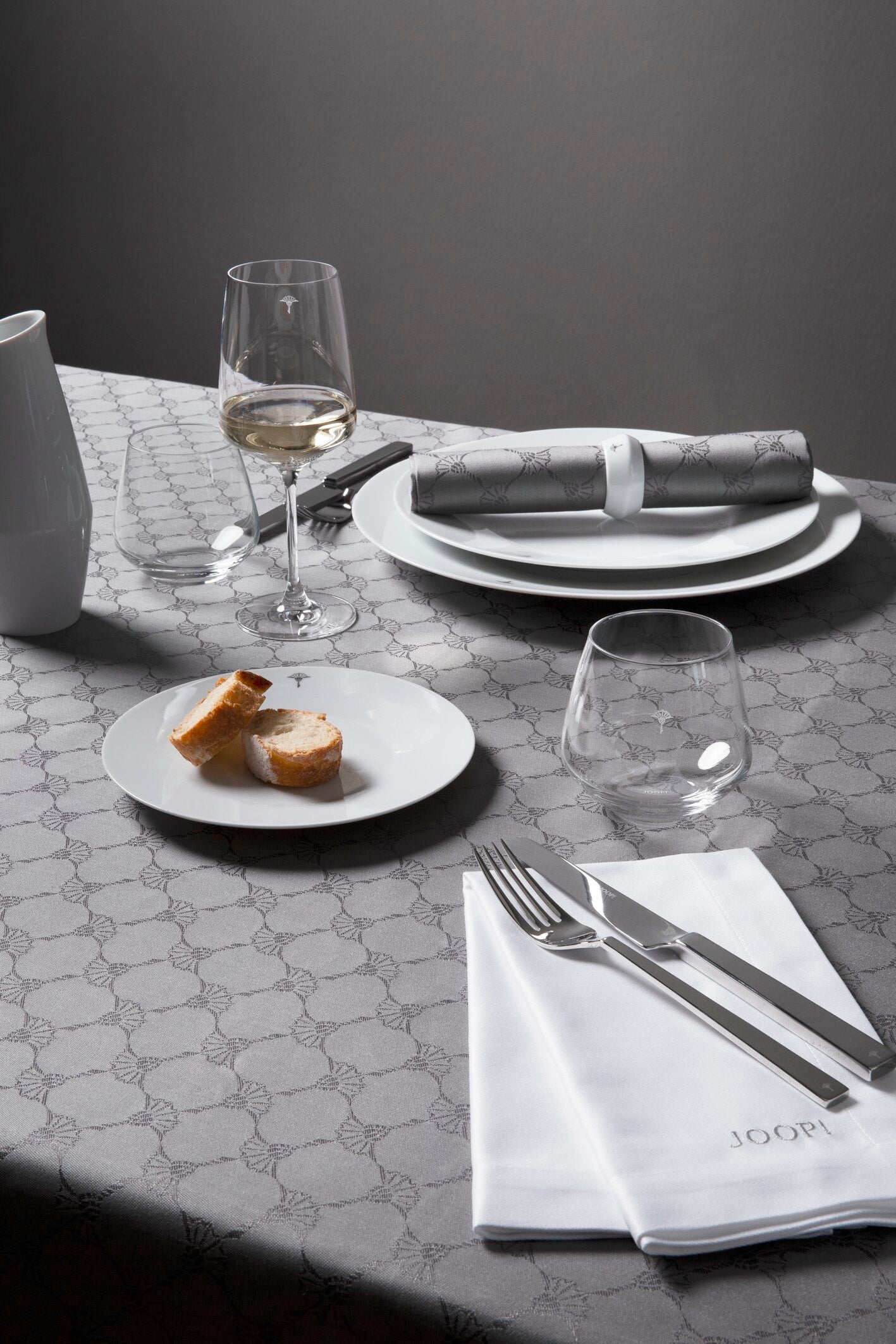 Hochwertig verarbeitete JOOP! CORNFLOWER ALLOVER Tischdecke in Halbzwirn-Qualität mit Baumwoll-Anteil und Kornblumen-Allover-Muster. Dining in style: JOOP! DINING GLAMOUR umfasst ein komplettes Tafelservice, eine Bestecklinie, Kristallgläser sowie Tischwäsche, die dank prägnanter Linienführung die richtige Balance zwischen selbstbewusstem Charakter und subtiler Eleganz finden. Umgesetzt wird das ikonische Design in hochwertigen Materialien wie feinstem Porzellan, glänzendem oder satiniertem Edelstahl und transparent dekoriertem Kristallglas.