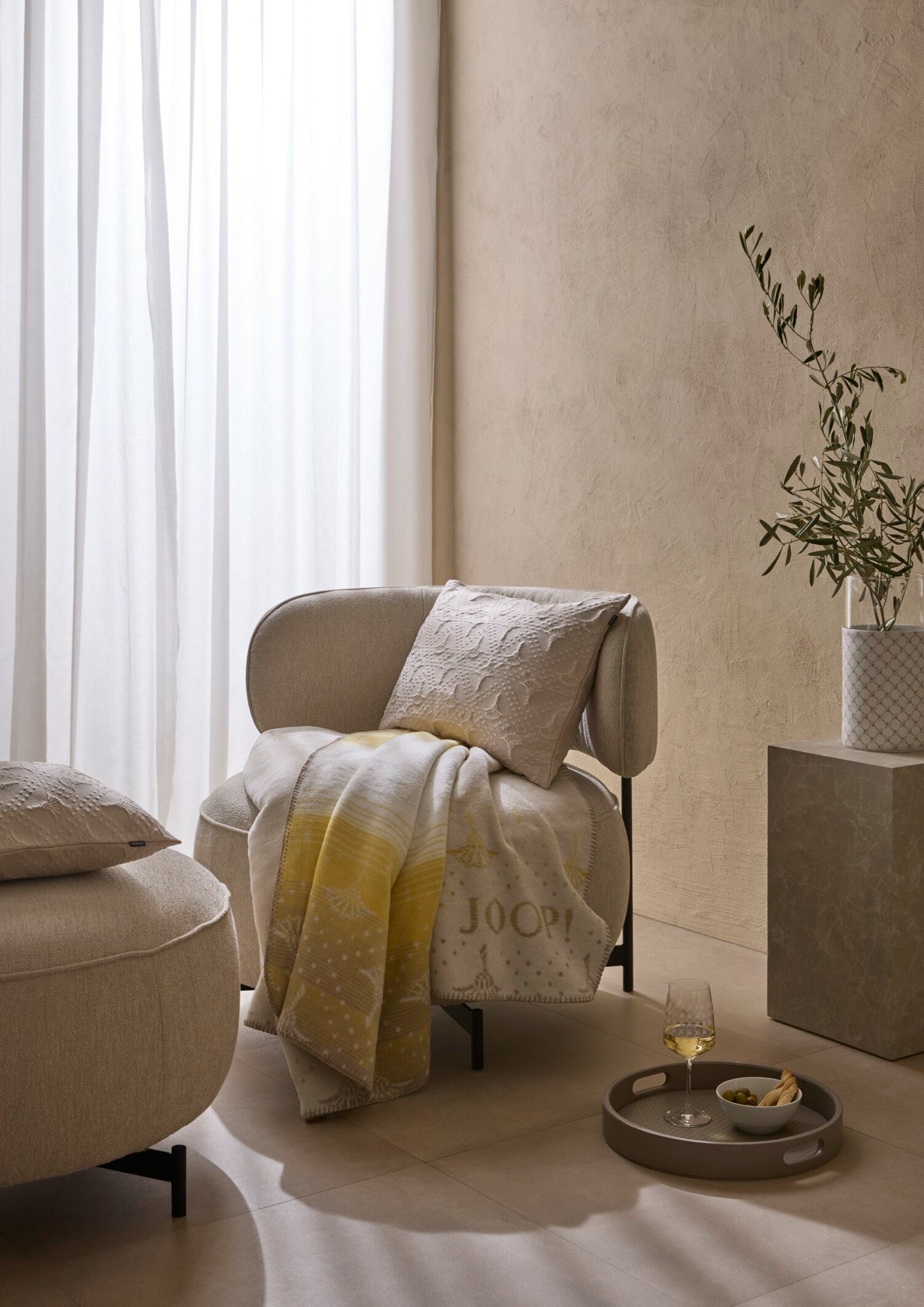 Modern Glamour auf den Punkt gebracht: Dafür steht JOOP! LIVING. Die Home-Linie des international bekannten deutschen Lifestyle-Labels JOOP! hat sich vom Anbieter luxuriöser Wohntextilien zur umfassenden Möbel- und Accessoire-Kollektion entwickelt, die hochklassige Produkte für nahezu alle Interior-Bereiche präsentiert. Vielseitige Möbel treffen auf dekorative Accessoires. Mal pur und minimalistisch, mal mit einem Hauch Extravaganz. Die Bereiche LIVING ROOM, DINING ROOM, BEDROOM und BATHROOM sprechen dieselbe Designsprache und verschmelzen zu harmonischen Wohnwelten. Abwechslungsreich akzentuiert durch die Farben, Muster und Trends der aktuellen Saison, die sich auf Dekokissen, Wohndecken, Tischwäsche, Bettwäsche, Frottier oder Badteppichen wiederfinden.