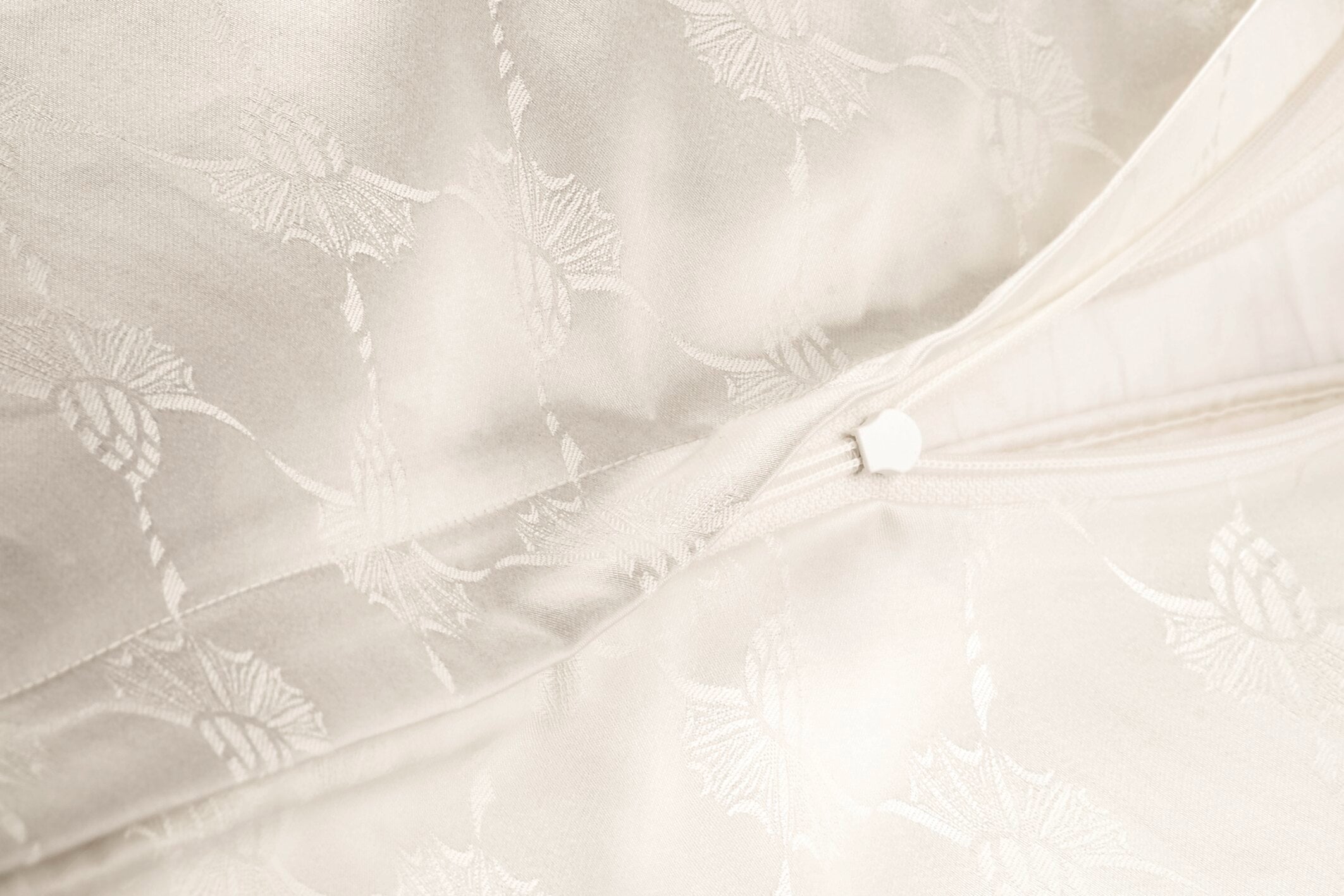 Edle JOOP! CORNFLOWER Bettwäsche aus hochwertig verarbeitetem Comfort-Satin mit unifarbenem Kornblumen-Allover-Muster und gesticktem JOOP! Logo. Die JOOP! Bettwäsche überzeugt durch ihre luxuriöse Qualität und ihr einzigartiges Design: Hochwertigste ägyptische Baumwolle bildet die Grundlage für die besonders feinen Garne, die zu seidigem Comfort-Satin verarbeitet werden. Nach verschiedenen Veredelungs- und Ausrüstungsschritten wird die Ware in Deutschland konfektioniert – in hochwertiger Verarbeitung, mit verdeckten, farblich angepassten Reißverschlüssen und anderen handwerklichen Details. Das fertig konfektionierte Produkt wird handgebügelt und dabei einer sorgfältigen Qualitätsendkontrolle unterworfen.