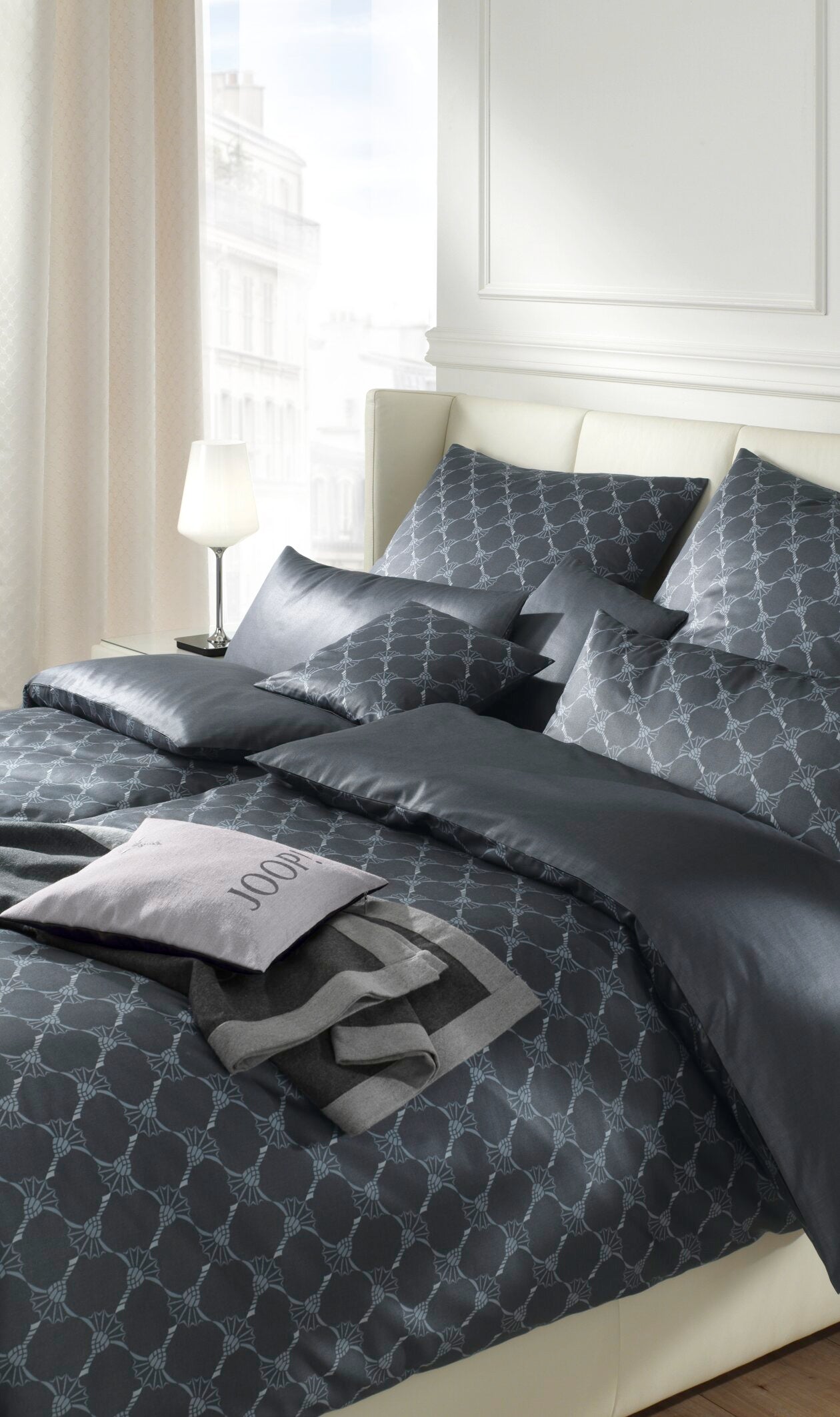 Modern Glamour auf den Punkt gebracht: Dafür steht JOOP! LIVING. Die Home-Linie des international bekannten deutschen Lifestyle-Labels JOOP! hat sich vom Anbieter luxuriöser Wohntextilien zur umfassenden Möbel- und Accessoire-Kollektion entwickelt, die hochklassige Produkte für nahezu alle Interior-Bereiche präsentiert. Vielseitige Möbel treffen auf dekorative Accessoires. Mal pur und minimalistisch, mal mit einem Hauch Extravaganz. Die Bereiche LIVING ROOM, DINING ROOM, BEDROOM und BATHROOM sprechen dieselbe Designsprache und verschmelzen zu harmonischen Wohnwelten. Abwechslungsreich akzentuiert durch die Farben, Muster und Trends der aktuellen Saison, die sich auf Dekokissen, Wohndecken, Tischwäsche, Bettwäsche, Frottier oder Badteppichen wiederfinden.