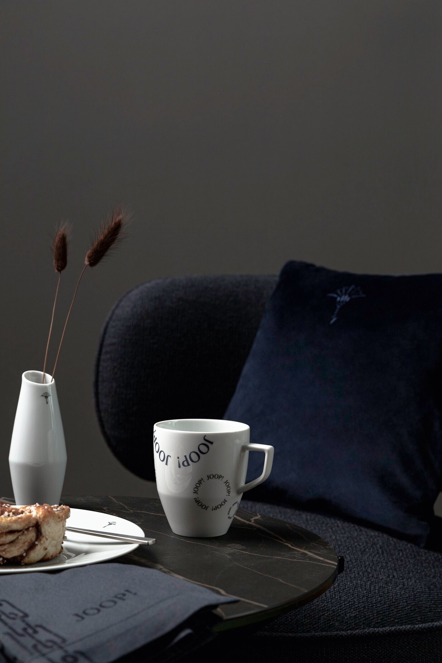 Zwei kontrastierende Dekor-Linien inszenieren das legendäre Marken-Signet, die Kornblume, auf virtuose Weise. Unterschiedlich kombinierbar sind die textilen Sortimente wie Servietten, Sets, Tischläufer und Tischdecken in klassischen oder saisonalen Farben und dazu passenden Tischaccessoires wie Kerzen. Auf allen Produkten der Kollektion dokumentiert ein zurückhaltend gesetztes JOOP! Label den hohen Anspruch der Marke an Qualität und Design. Der Zusatz „Made in Germany“ zeigt die intensive Entwicklung und Fertigung in Deutschland.