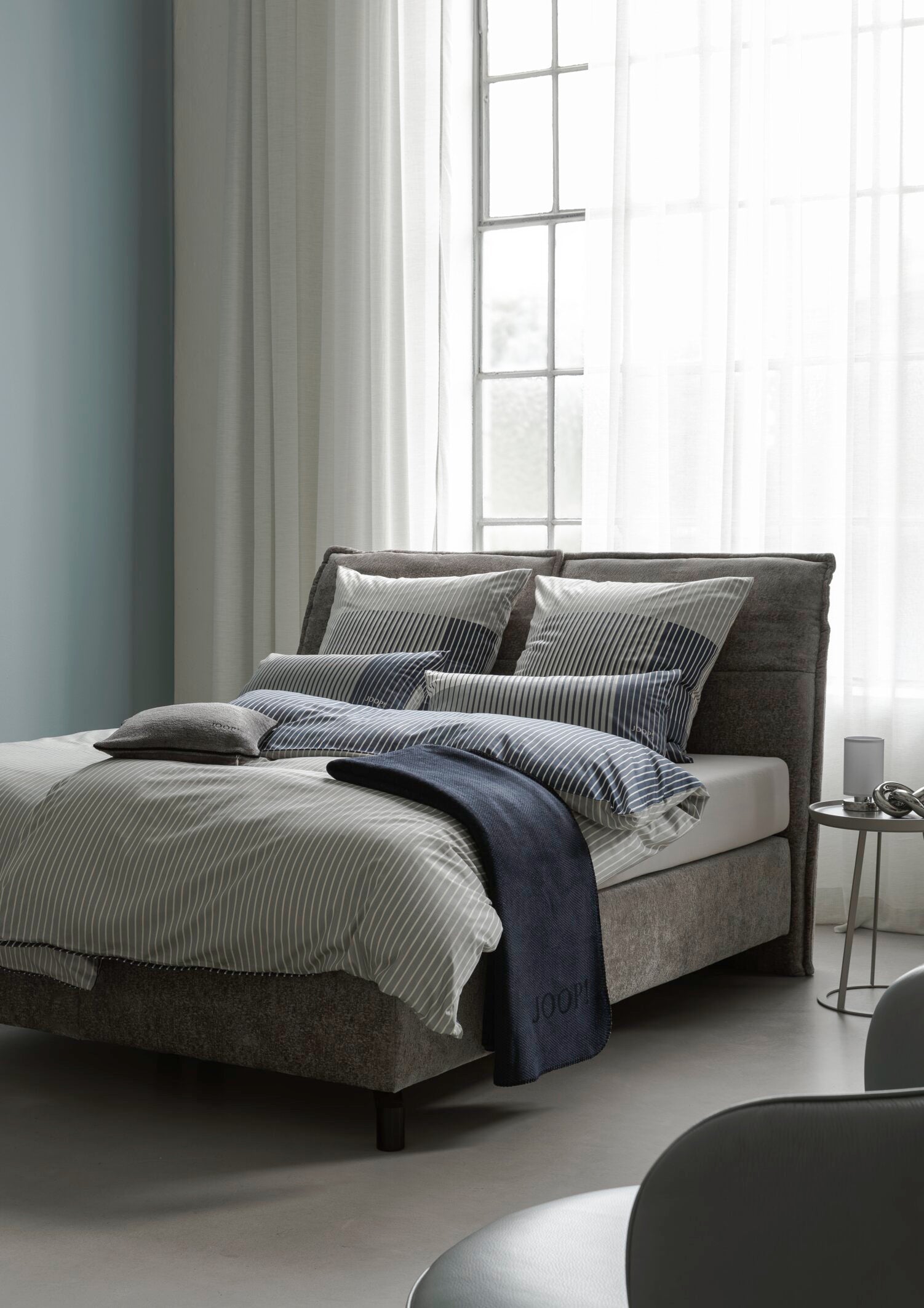 Edle JOOP! DIVIDED Bettwäsche aus hochwertig verarbeitetem Comfort-Satin mit modern interpretiertem und harmonisch-kontrastierendem Streifen-Muster sowie JOOP! Logo-Signatur. Die JOOP! Bettwäsche überzeugt durch ihre luxuriöse Qualität und ihr einzigartiges Design: Hochwertigste ägyptische Baumwolle bildet die Grundlage für die besonders feinen Garne, die zu seidigem Comfort-Satin verarbeitet werden. Nach verschiedenen Veredelungs- und Ausrüstungsschritten wird die Ware in Deutschland konfektioniert – in hochwertiger Verarbeitung, mit verdeckten, farblich angepassten Reißverschlüssen und anderen handwerklichen Details. Das fertig konfektionierte Produkt wird handgebügelt und dabei einer sorgfältigen Qualitätsendkontrolle unterworfen.