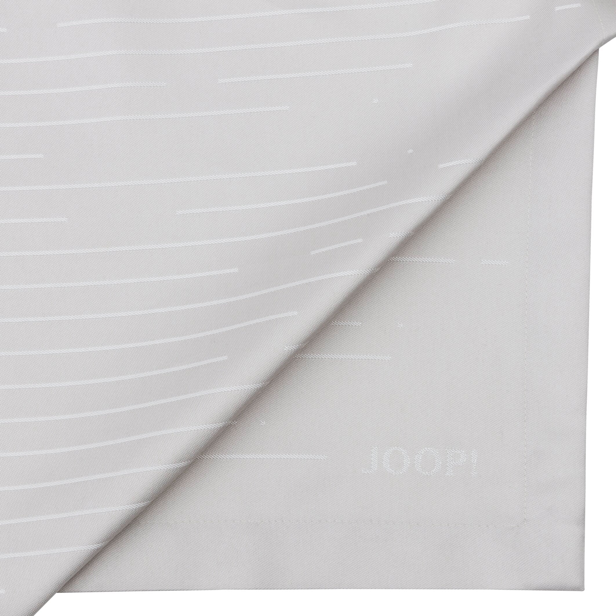 Hochwertig verarbeitete JOOP! DIVIDED Platzsets in Halbzwirn-Qualität mit Baumwoll-Anteil und leicht schimmerndem Streifenmuster sowie eleganter JOOP! Logo-Signatur. Dining in style: JOOP! DINING GLAMOUR umfasst ein komplettes Tafelservice, eine Bestecklinie, Kristallgläser sowie Tischwäsche, die dank prägnanter Linienführung die richtige Balance zwischen selbstbewusstem Charakter und subtiler Eleganz finden. Umgesetzt wird das ikonische Design in hochwertigen Materialien wie feinstem Porzellan, glänzendem oder satiniertem Edelstahl und transparent dekoriertem Kristallglas. Zwei kontrastierende Dekor-Linien inszenieren das legendäre Marken-Signet, die Kornblume, auf virtuose Weise. Unterschiedlich kombinierbar sind die textilen Sortimente wie Servietten, Sets, Tischläufer und Tischdecken in klassischen oder saisonalen Farben und dazu passenden Tischaccessoires wie Kerzen. Auf allen Produkten der Kollektion dokumentiert ein zurückhaltend gesetztes JOOP! Label den hohen Anspruch der Marke an Qualität und Design. Der Zusatz „Made in Germany“ zeigt die intensive Entwicklung und Fertigung in Deutschland.