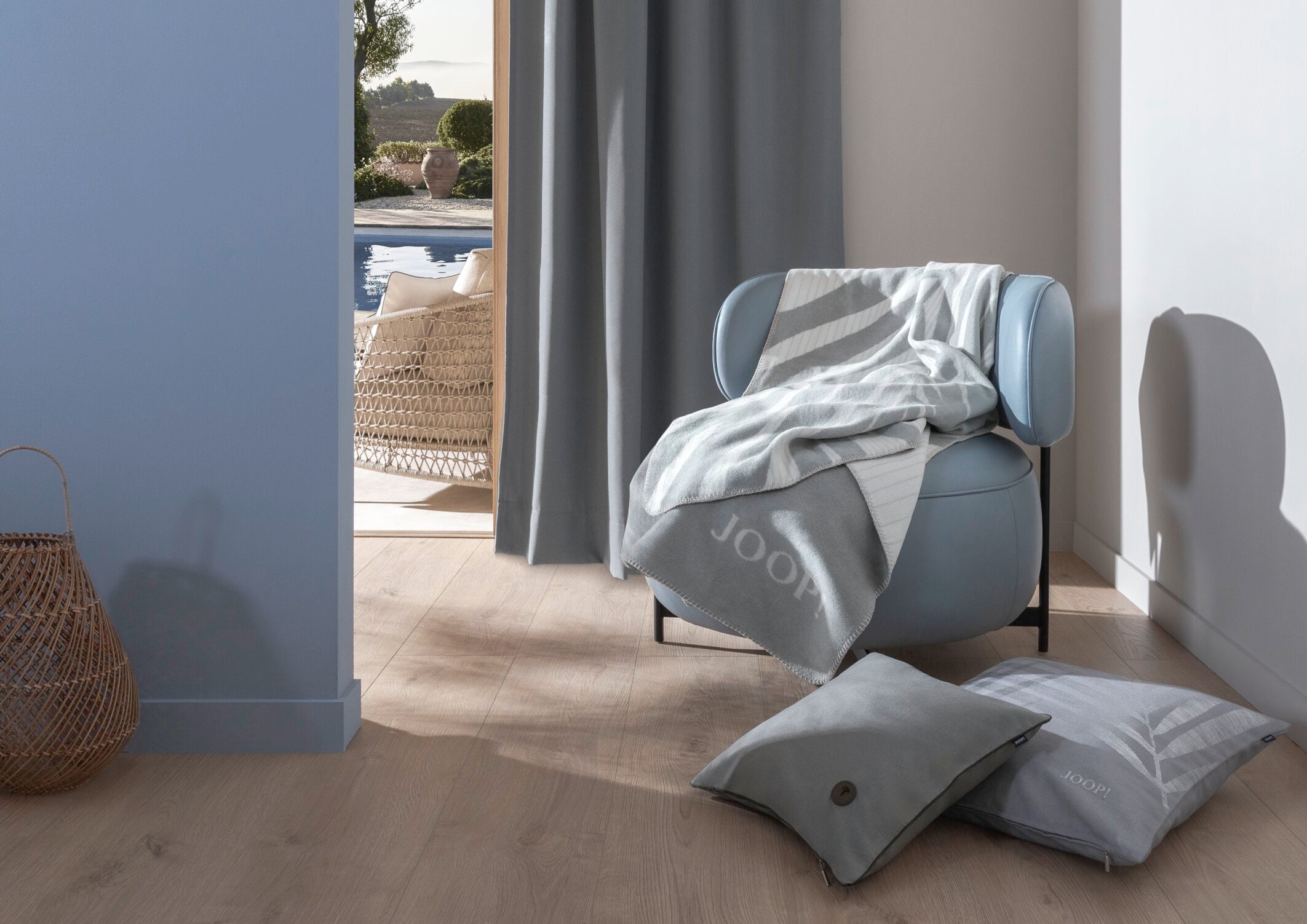 Modern Glamour auf den Punkt gebracht: Dafür steht JOOP! LIVING. Die Home-Linie des international bekannten deutschen Lifestyle-Labels JOOP! hat sich vom Anbieter luxuriöser Wohntextilien zur umfassenden Möbel- und Accessoire-Kollektion entwickelt, die hochklassige Produkte für nahezu alle Interior-Bereiche präsentiert. Vielseitige Möbel treffen auf dekorative Accessoires. Mal pur und minimalistisch, mal mit einem Hauch Extravaganz. Die Bereiche LIVING ROOM, DINING ROOM, BEDROOM und BATHROOM sprechen dieselbe Designsprache und verschmelzen zu harmonischen Wohnwelten. Abwechslungsreich akzentuiert durch die Farben, Muster und Trends der aktuellen Saison, die sich auf Dekokissen, Wohndecken, Tischwäsche, Bettwäsche, Frottier oder Badteppichen wiederfinden.