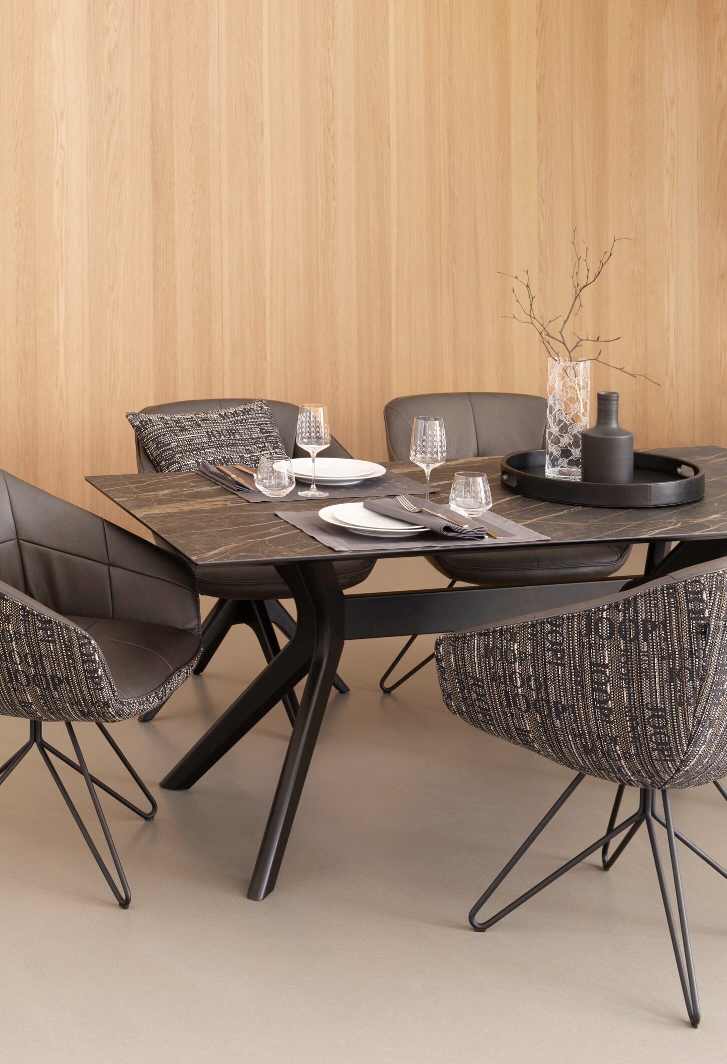 Modern Glamour auf den Punkt gebracht: Dafür steht JOOP! LIVING. Die Home-Linie des international bekannten deutschen Lifestyle-Labels JOOP! hat sich vom Anbieter luxuriöser Wohntextilien zur umfassenden Möbel- und Accessoire-Kollektion entwickelt, die hochklassige Produkte für nahezu alle Interior-Bereiche präsentiert. Vielseitige Möbel treffen auf dekorative Accessoires. Mal pur und minimalistisch, mal mit einem Hauch Extravaganz. Die Bereiche LIVING ROOM, DINING ROOM, BEDROOM und BATHROOM sprechen dieselbe Designsprache und verschmelzen zu harmonischen Wohnwelten. Abwechslungsreich akzentuiert durch die Farben, Muster und Trends der aktuellen Saison, die sich auf Dekokissen, Wohndecken, Tischwäsche, Bettwäsche, Frottier oder Badteppichen wiederfinden.