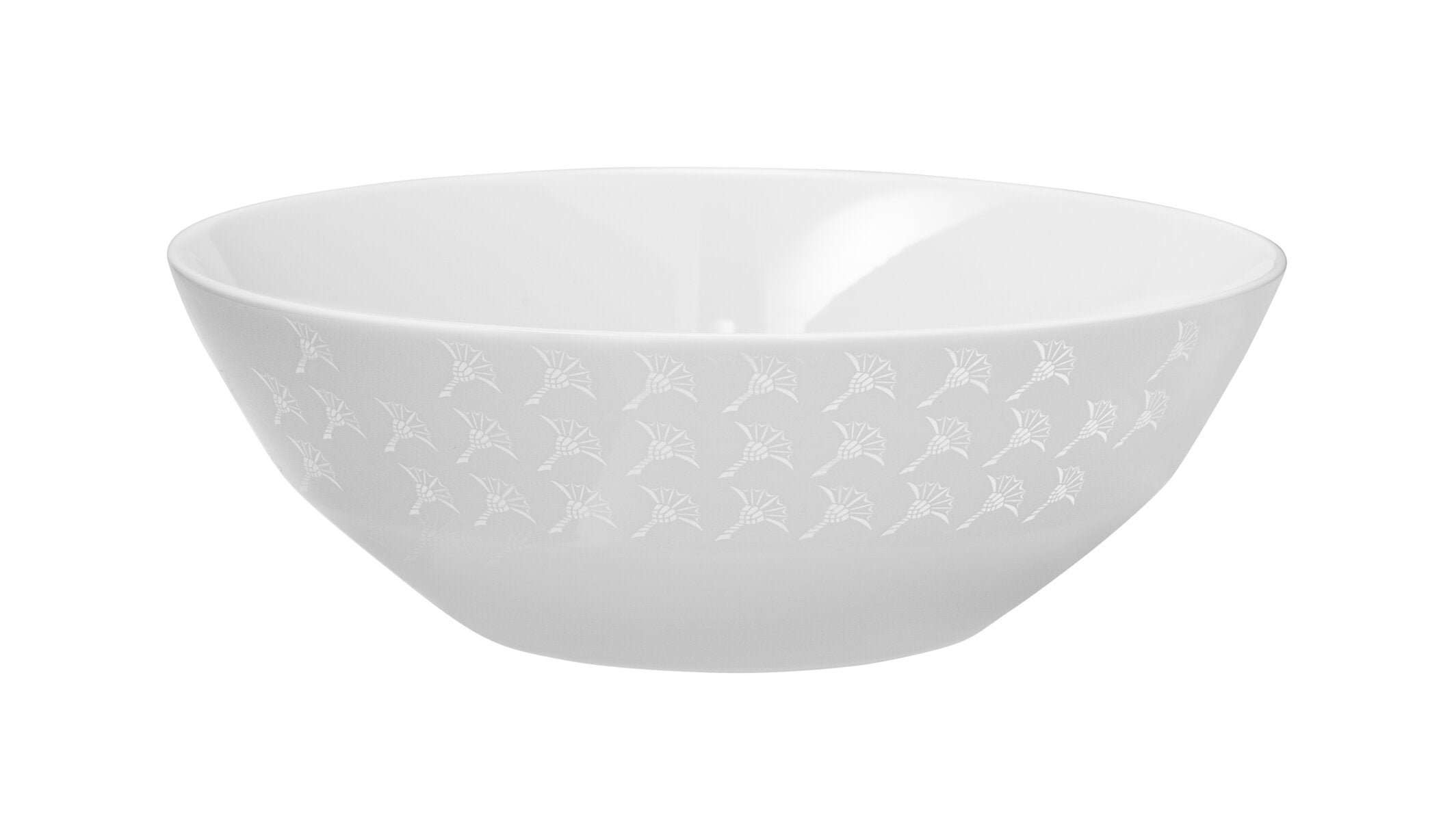 Elegante Porzellan-Schale mit Kornblumen-Verlauf als Dekor und JOOP! Logo als Bodenmarke, Made in Germany. Dining in style: JOOP! DINING GLAMOUR umfasst ein komplettes Tafelservice, eine Bestecklinie, Kristallgläser sowie Tischwäsche, die dank prägnanter Linienführung die richtige Balance zwischen selbstbewusstem Charakter und subtiler Eleganz finden. Umgesetzt wird das ikonische Design in hochwertigen Materialien wie feinstem Porzellan, glänzendem oder satiniertem Edelstahl und transparent dekoriertem Kristallglas.