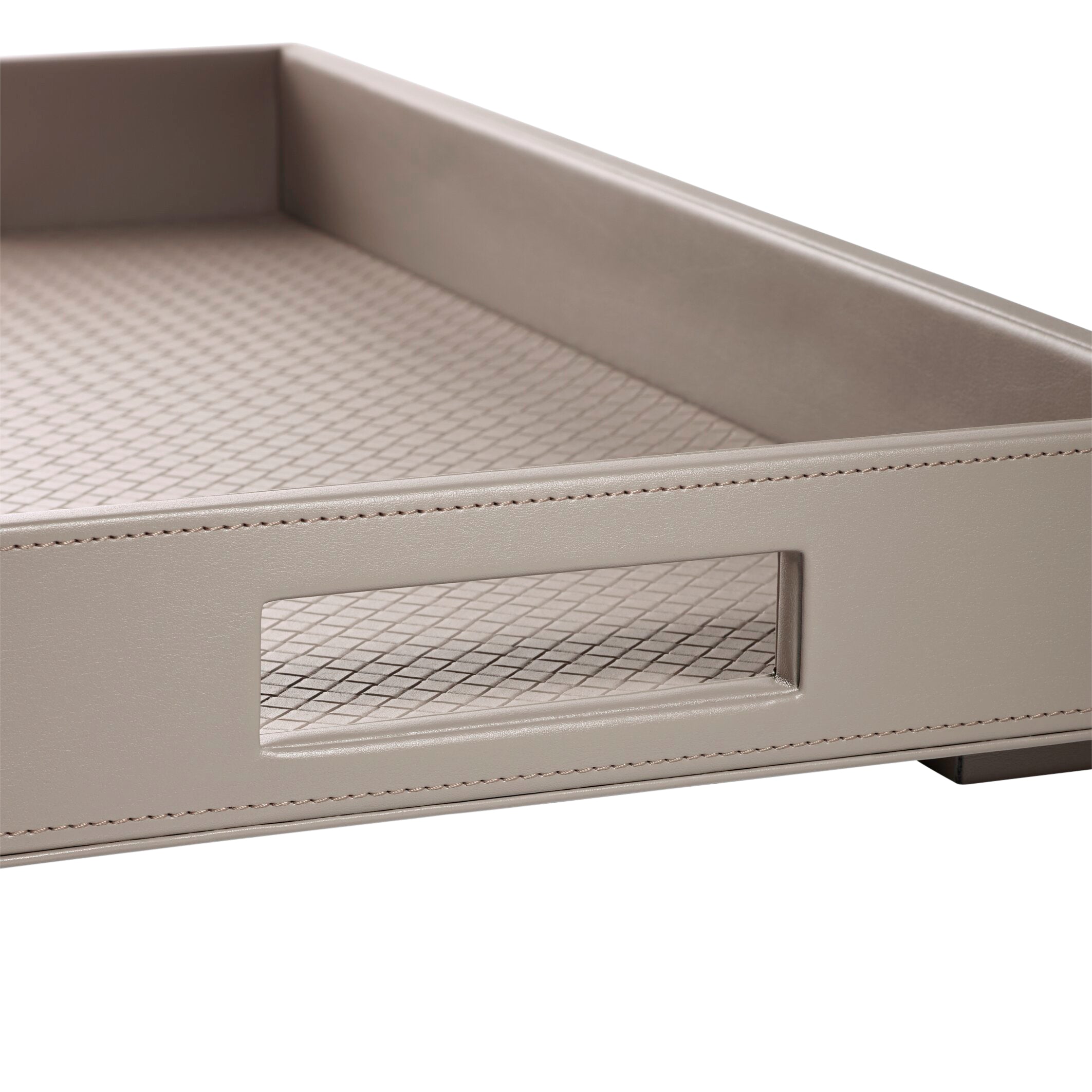 Edles JOOP! HOMELINE Tablett in Lederoptik mit Griffen, JOOP! Metall-Badge und eckiger Innenfläche mit geprägtem Flechtmuster. Dining in style: JOOP! DINING GLAMOUR umfasst ein komplettes Tafelservice, eine Bestecklinie, Kristallgläser sowie Tischwäsche, die dank prägnanter Linienführung die richtige Balance zwischen selbstbewusstem Charakter und subtiler Eleganz finden. Umgesetzt wird das ikonische Design in hochwertigen Materialien wie feinstem Porzellan, glänzendem oder satiniertem Edelstahl und transparent dekoriertem Kristallglas.