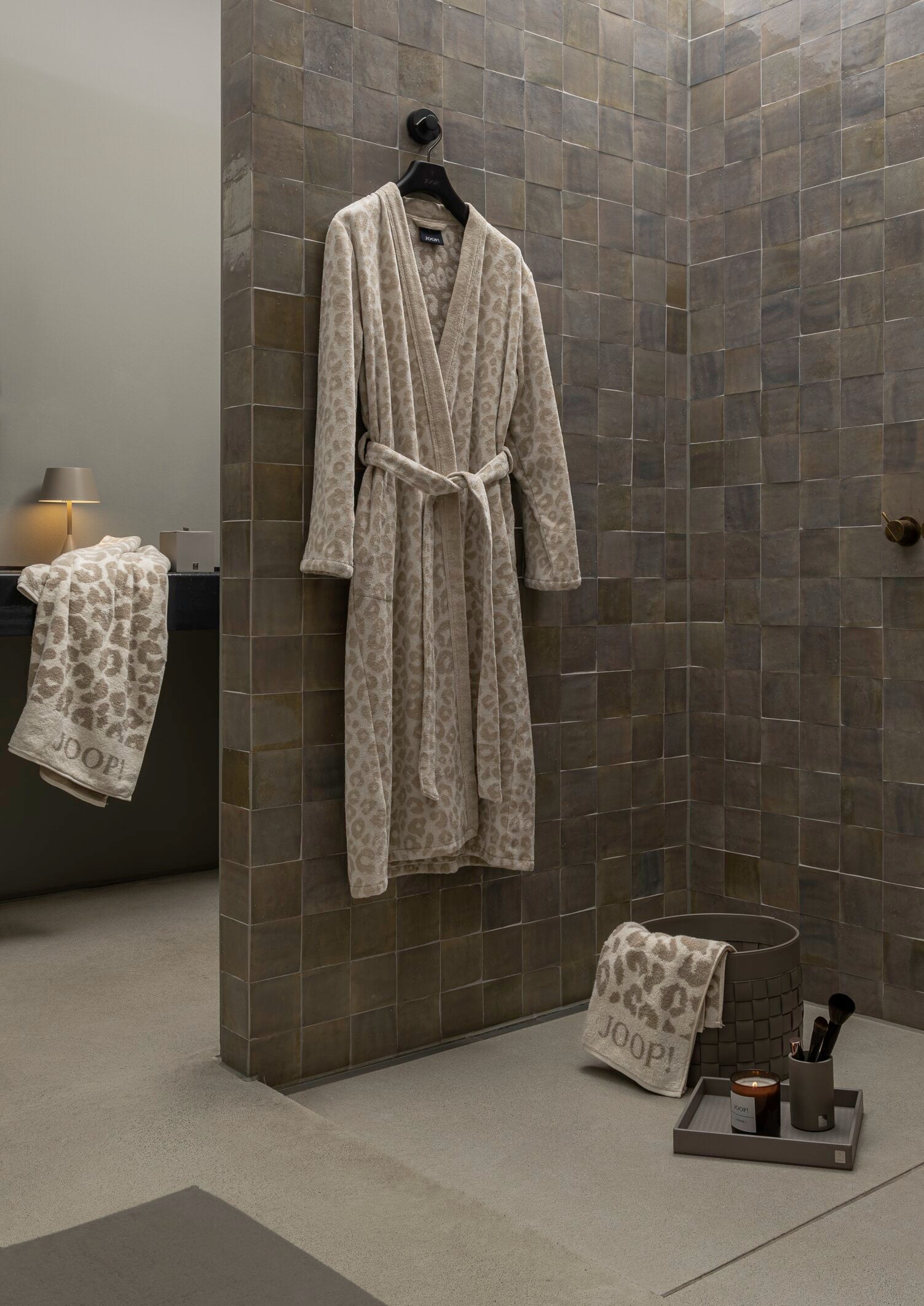 JOOP! LEO Damen-Kimono in extraflauschiger Walkfrottier-Qualität aus 100% Baumwolle mit Leo-Muster im trendigen Animal-Print, farblich abgestimmtem Revers und seitlichen Taschen sowie Gürtel.
