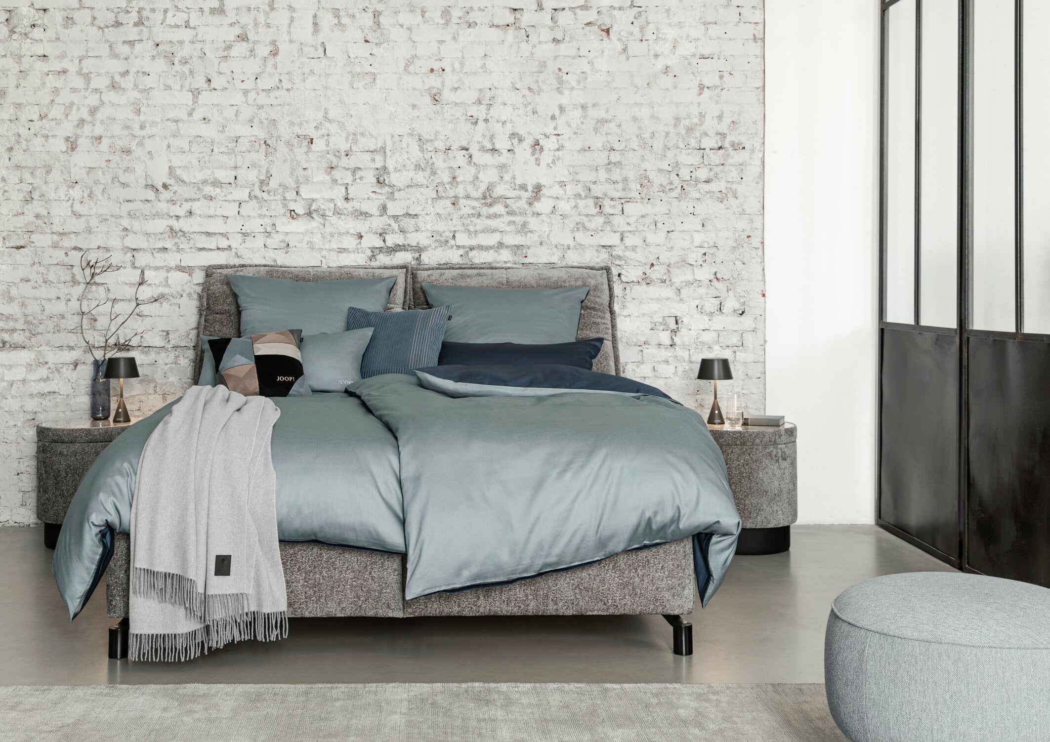 Modern Glamour auf den Punkt gebracht: Dafür steht JOOP! LIVING. Die Home-Linie des international bekannten deutschen Lifestyle-Labels JOOP! hat sich vom Anbieter luxuriöser Wohntextilien zur umfassenden Möbel- und Accessoire-Kollektion entwickelt, die hochklassige Produkte für nahezu alle Interior-Bereiche präsentiert. Vielseitige Möbel treffen auf dekorative Accessoires. Mal pur und minimalistisch, mal mit einem Hauch Extravaganz. Die Bereiche LIVING ROOM, DINING ROOM, BEDROOM und BATHROOM sprechen dieselbe Designsprache und verschmelzen zu harmonischen Wohnwelten. Abwechslungsreich akzentuiert durch die Farben, Muster und Trends der aktuellen Saison, die sich auf Dekokissen, Wohndecken, Tischwäsche, Bettwäsche, Frottier oder Badteppichen wiederfinden.