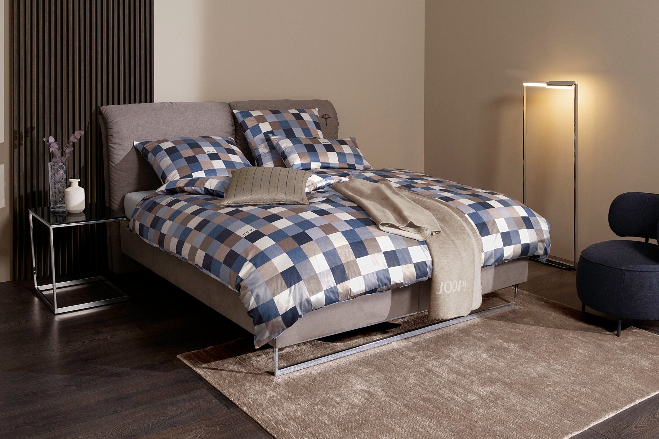 Edle JOOP! MOSAIC Bettwäsche aus hochwertig verarbeitetem Comfort-Satin mit mehrfarbigem Mosaik-Muster und gedrucktem JOOP! Logo. Die JOOP! Bettwäsche überzeugt durch ihre luxuriöse Qualität und ihr einzigartiges Design: Hochwertigste ägyptische Baumwolle bildet die Grundlage für die besonders feinen Garne, die zu seidigem Comfort-Satin verarbeitet werden. Nach verschiedenen Veredelungs- und Ausrüstungsschritten wird die Ware in Deutschland konfektioniert – in hochwertiger Verarbeitung, mit verdeckten, farblich angepassten Reißverschlüssen und anderen handwerklichen Details. Das fertig konfektionierte Produkt wird handgebügelt und dabei einer sorgfältigen Qualitätsendkontrolle unterworfen.