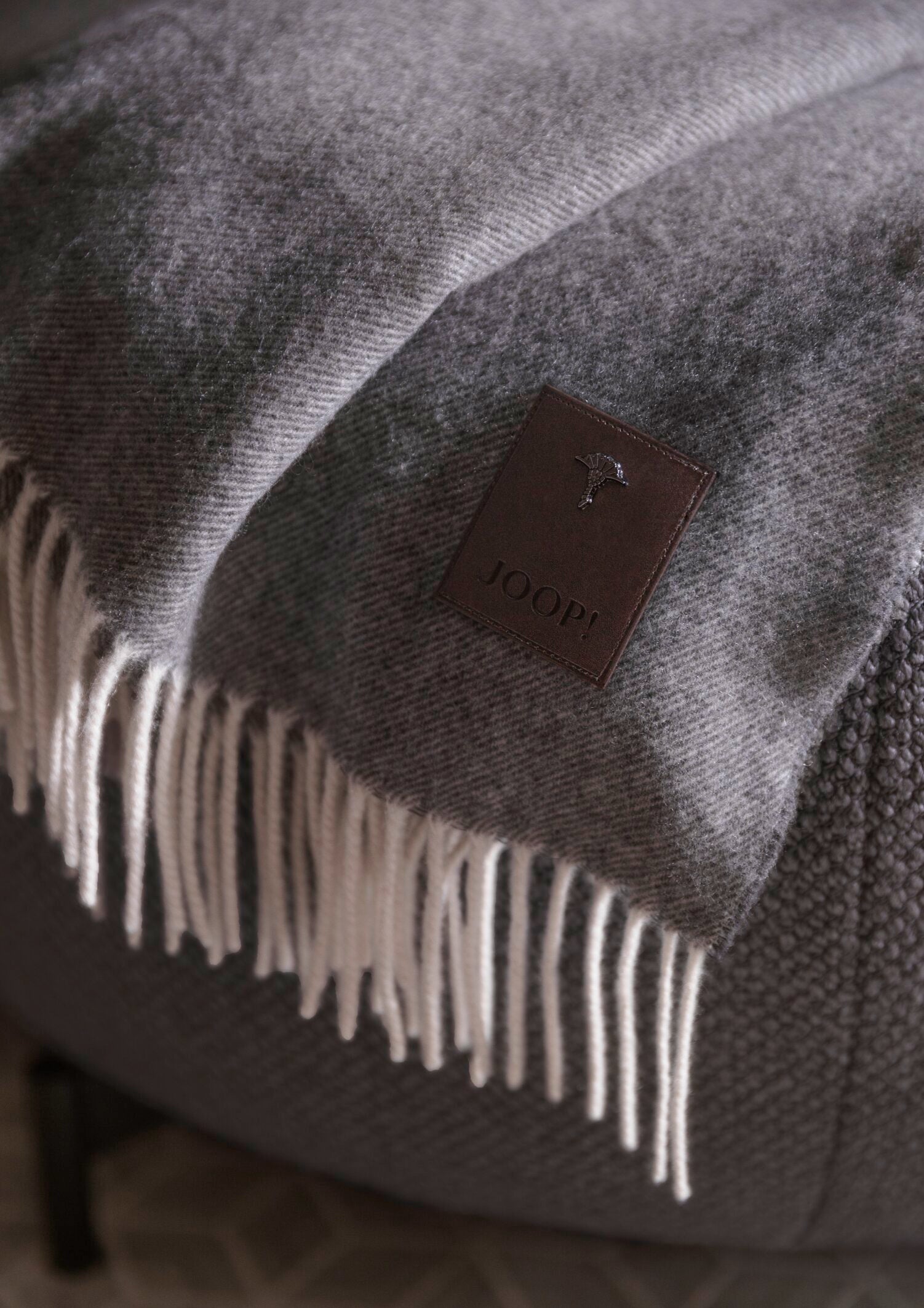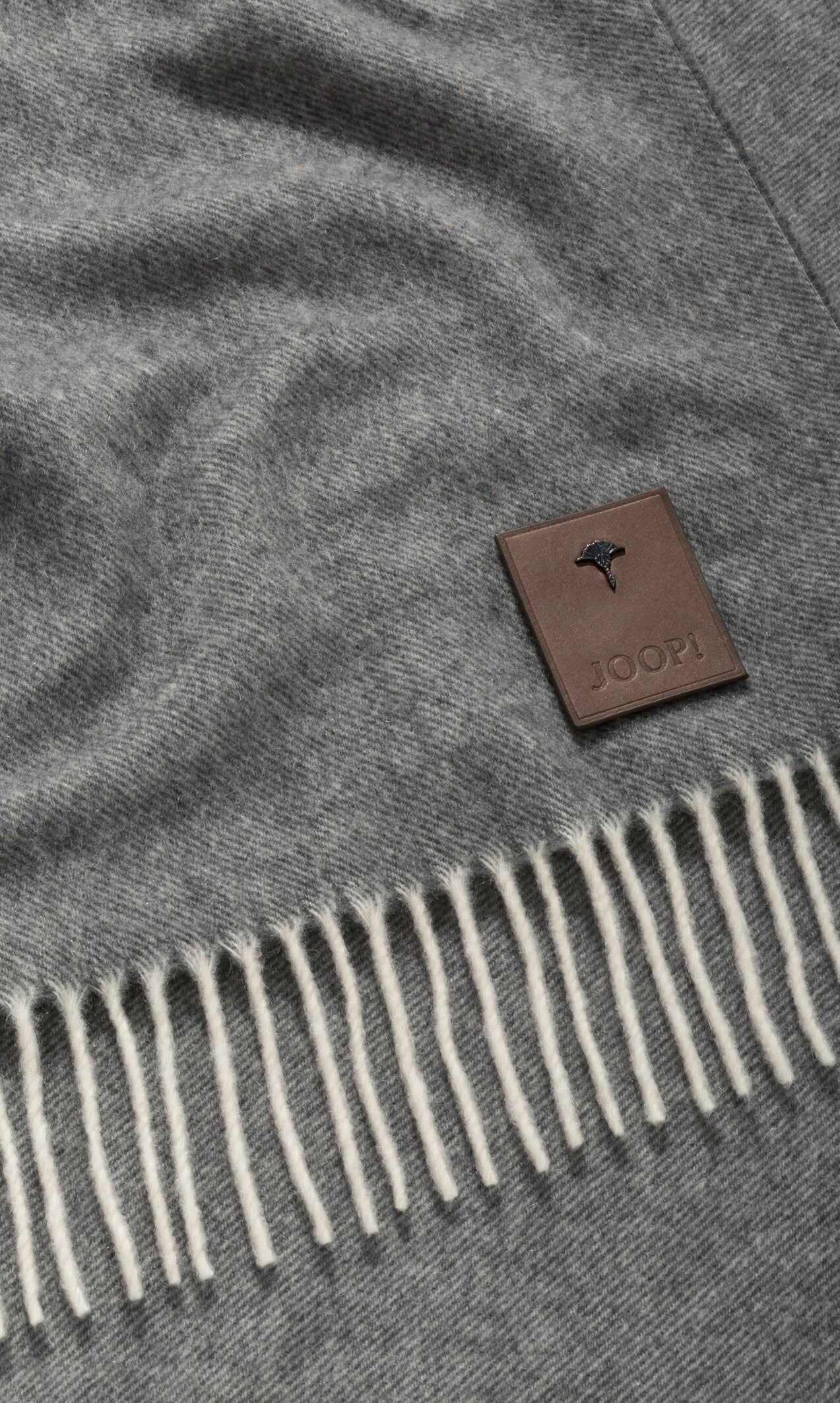 Hochwertiges JOOP! NOBLE Plaid aus 100% Kaschmir mit Fransen-Konfektion und JOOP! Leder-Badge. Von ihren luxuriösen Seiten und aus besonders weichen Qualitäten zeigen sich die großformatigen JOOP! Wohndecken und Plaids. Die feinen Eyecatcher sorgen mit ihrem wirkungsvollen Design für Akzente im Wohn- und Schlafbereich und sorgen so für Flair auf höchstem Niveau. Mit Fransen-Details oder geketteltem Zierstich sowie JOOP! Logo avancieren die Wohndecken und Plaids zum Lieblingsaccessoire.