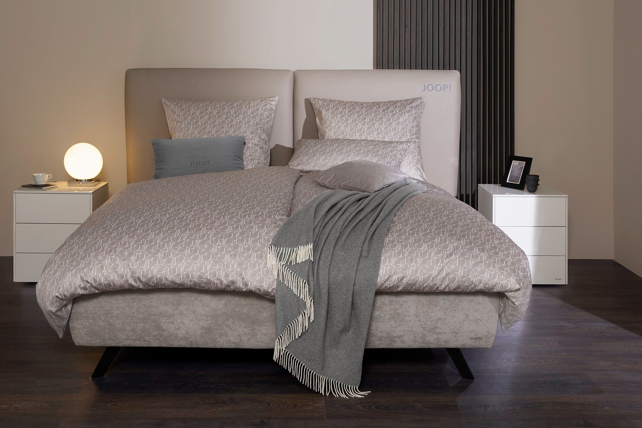Edle JOOP! ORNAMENT Bettwäsche aus hochwertig verarbeitetem Comfort-Satin mit ornamentalem JOOP! Logo-Muster. Die JOOP! Bettwäsche überzeugt durch ihre luxuriöse Qualität und ihr einzigartiges Design: Hochwertigste ägyptische Baumwolle bildet die Grundlage für die besonders feinen Garne, die zu seidigem Comfort-Satin verarbeitet werden. Nach verschiedenen Veredelungs- und Ausrüstungsschritten wird die Ware in Deutschland konfektioniert – in hochwertiger Verarbeitung, mit verdeckten, farblich angepassten Reißverschlüssen und anderen handwerklichen Details. Das fertig konfektionierte Produkt wird handgebügelt und dabei einer sorgfältigen Qualitätsendkontrolle unterworfen.