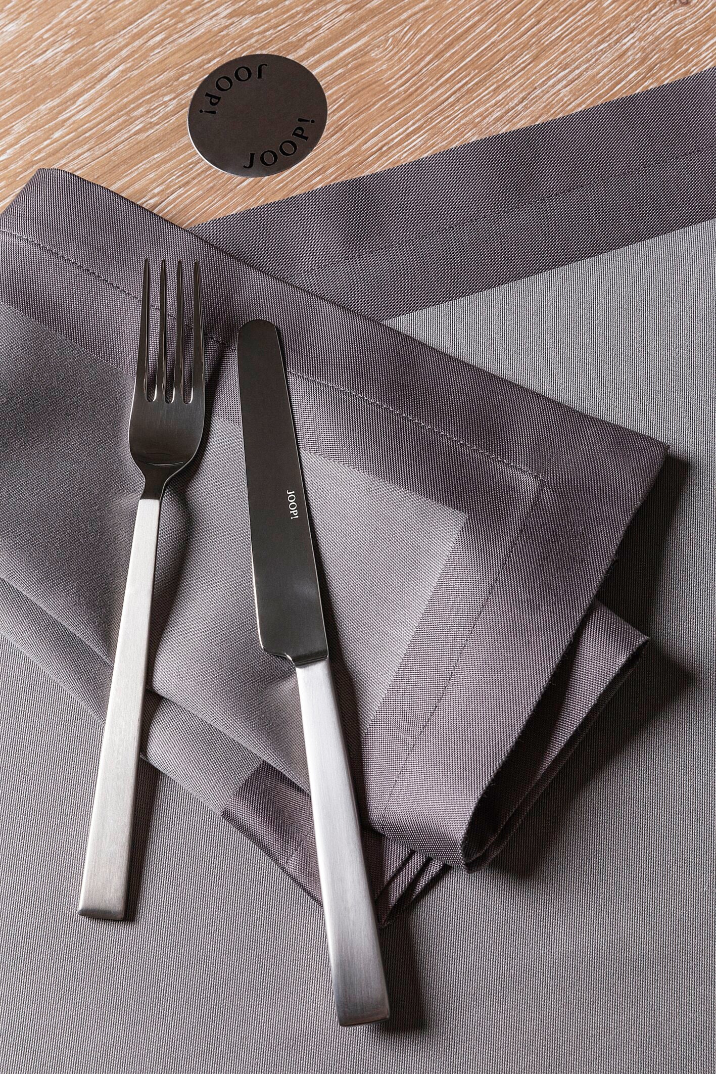 Hochwertig verarbeitete JOOP! SIGNATURE Servietten in Halbzwirn-Qualität mit Baumwoll-Anteil und JOOP! Logo-Signatur. Dining in style: JOOP! DINING GLAMOUR umfasst ein komplettes Tafelservice, eine Bestecklinie, Kristallgläser sowie Tischwäsche, die dank prägnanter Linienführung die richtige Balance zwischen selbstbewusstem Charakter und subtiler Eleganz finden. Umgesetzt wird das ikonische Design in hochwertigen Materialien wie feinstem Porzellan, glänzendem oder satiniertem Edelstahl und transparent dekoriertem Kristallglas.