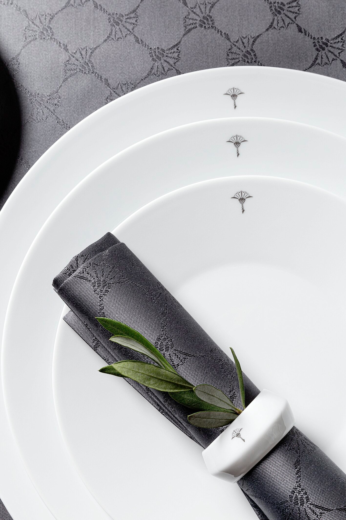 Eleganter Porzellan-Speiseteller (2er Set) mit einzelner Kornblume als Dekor und JOOP! Logo als Bodenmarke, Made in Germany. Dining in style: JOOP! DINING GLAMOUR umfasst ein komplettes Tafelservice, eine Bestecklinie, Kristallgläser sowie Tischwäsche, die dank prägnanter Linienführung die richtige Balance zwischen selbstbewusstem Charakter und subtiler Eleganz finden. Umgesetzt wird das ikonische Design in hochwertigen Materialien wie feinstem Porzellan, glänzendem oder satiniertem Edelstahl und transparent dekoriertem Kristallglas.