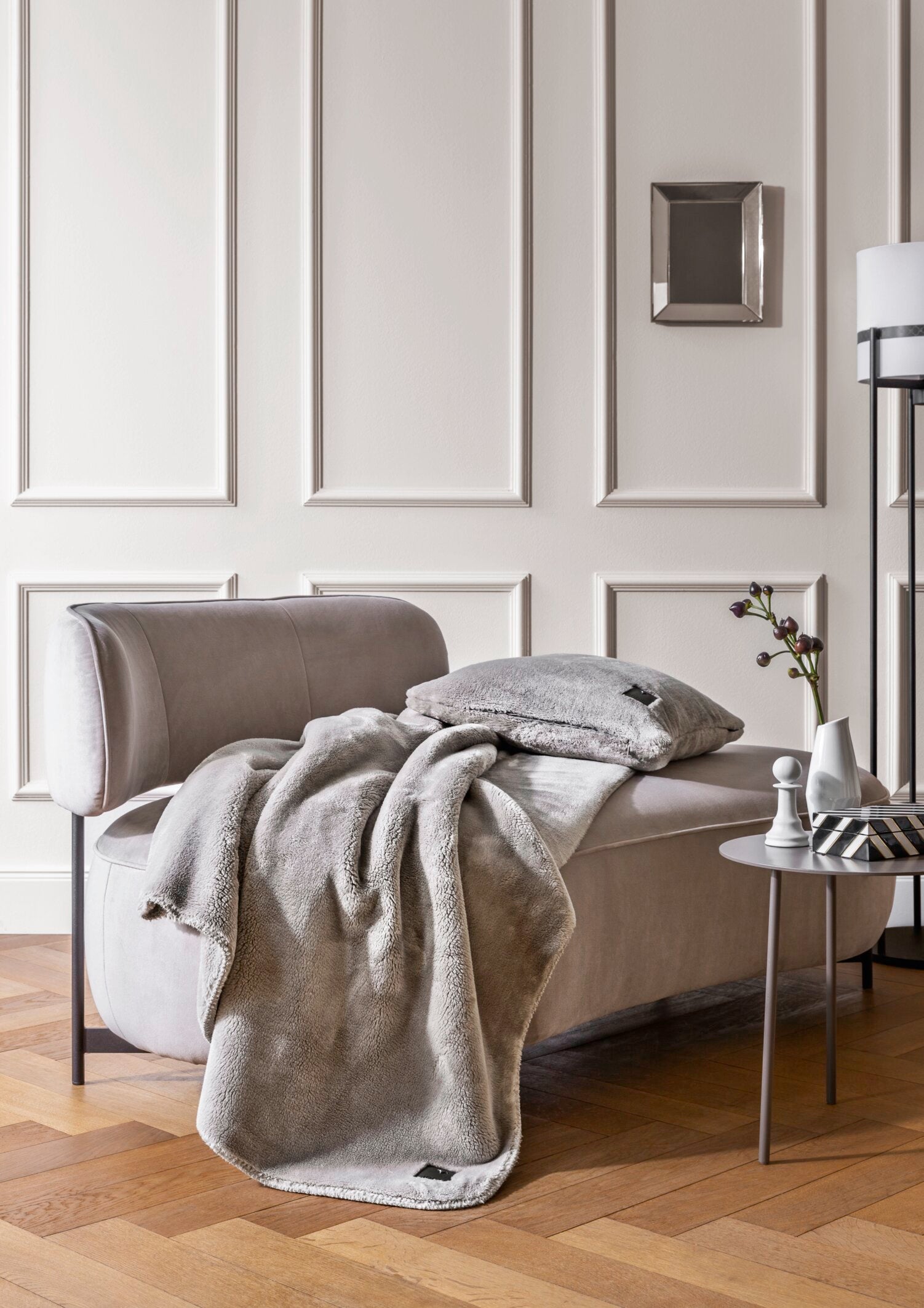 Elegantes JOOP! SLEEK Plaid in weicher Fake-Fur-Optik mit hochwertig verarbeitetem und eingelassenem JOOP! Leder-Label. Edle Blickfänger für zu Hause: Die Dekokissen und passenden Plaids der JOOP! HOME DECOR Kollektion überzeugen durch einen besonders hohen Qualitätsanspruch und mit exklusiven Dessins. Unter Verarbeitung hochwertiger Materialien entstehen in aufwändigen Produktionsprozessen elegante Kissenhüllen und Decken, die eine edle Wohlfühlatmosphäre schaffen.