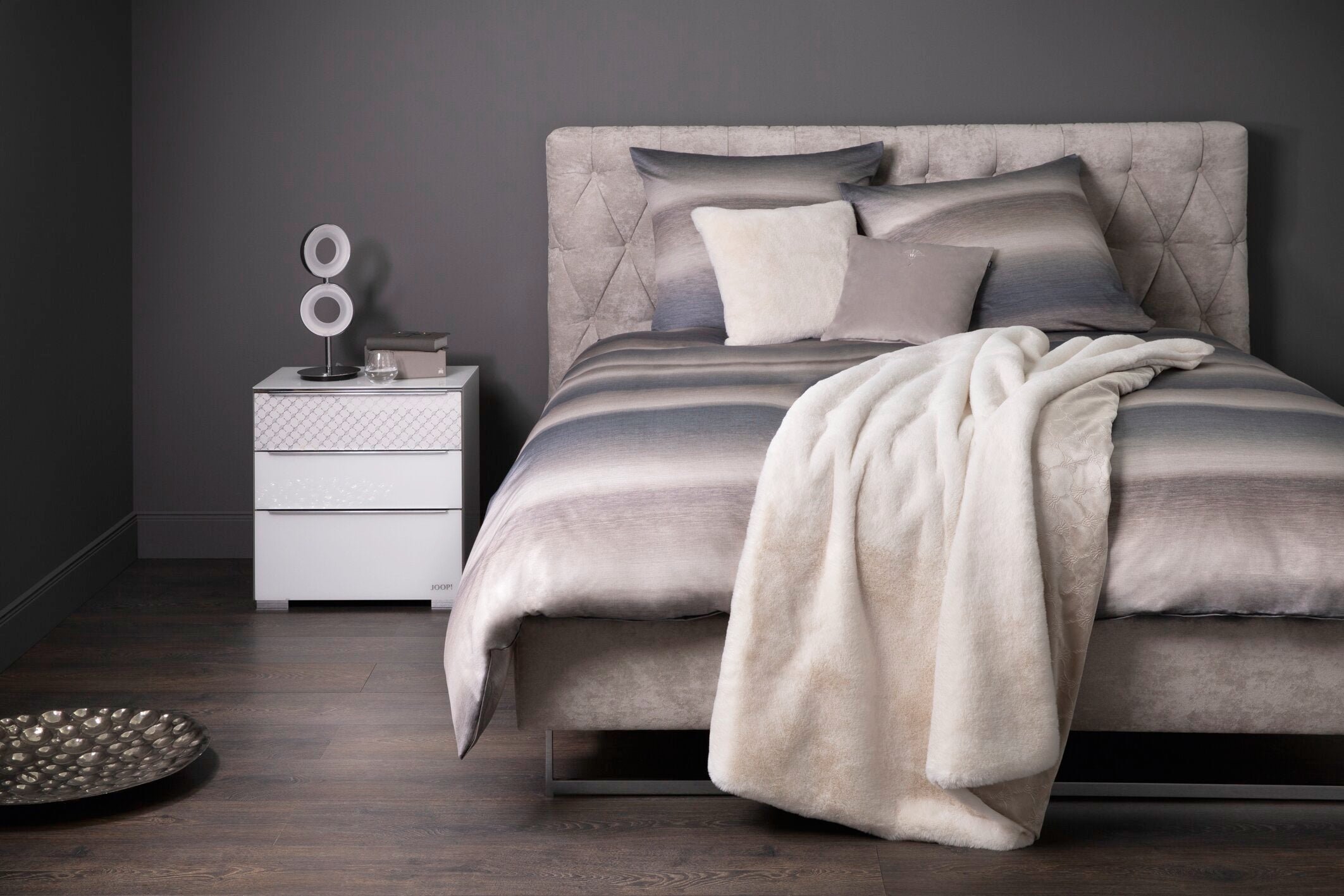 Elegantes JOOP! SMOOTH Plaid in Fake-Fur-Optik mit geprägter Microvelvet-Rückseite mit Kornblumen-Allover-Muster. Edle Blickfänger für zu Hause: Die Dekokissen und passenden Plaids der JOOP! HOME DECOR Kollektion überzeugen durch einen besonders hohen Qualitätsanspruch und mit exklusiven Dessins. Unter Verarbeitung hochwertiger Materialien entstehen in aufwändigen Produktionsprozessen elegante Kissenhüllen und Decken, die eine edle Wohlfühlatmosphäre schaffen.