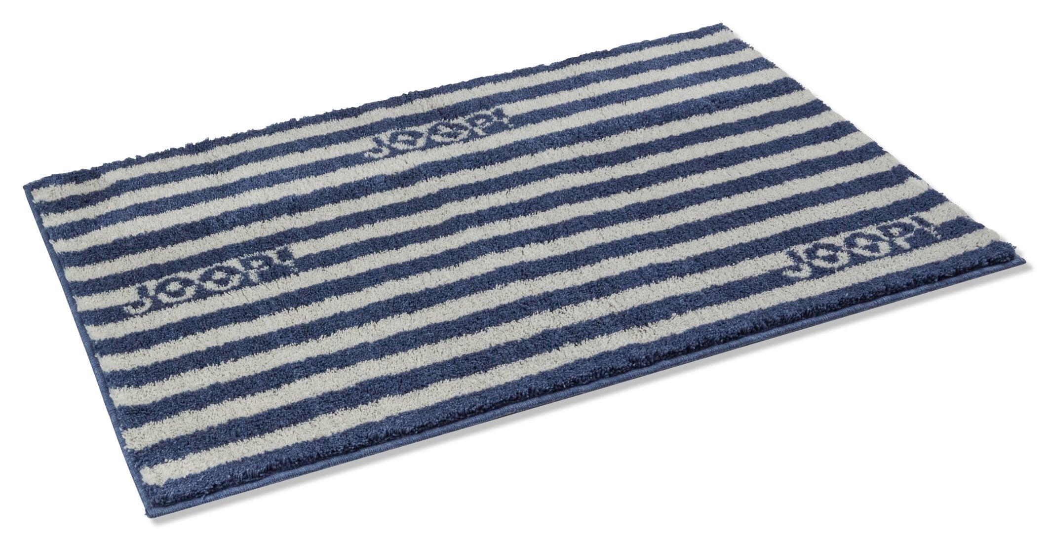 Extraflauschiger und hochwertig getufteter JOOP! SPLIT Badteppich mit modern interpretiertem und mehrfarbigem JOOP! Logo-Streifenmuster. Das Must-have für den privaten Bad-Bereich: Die JOOP! Badteppiche sorgen mit niedrigem und hohem Flor für erholsame Wellness-Momente im eigenen Bad und komplettieren die persönliche Relax-Zone. Made in Germany überzeugen die Vorleger mit handwerklicher Präzision und der klassischen JOOP! Signatur.