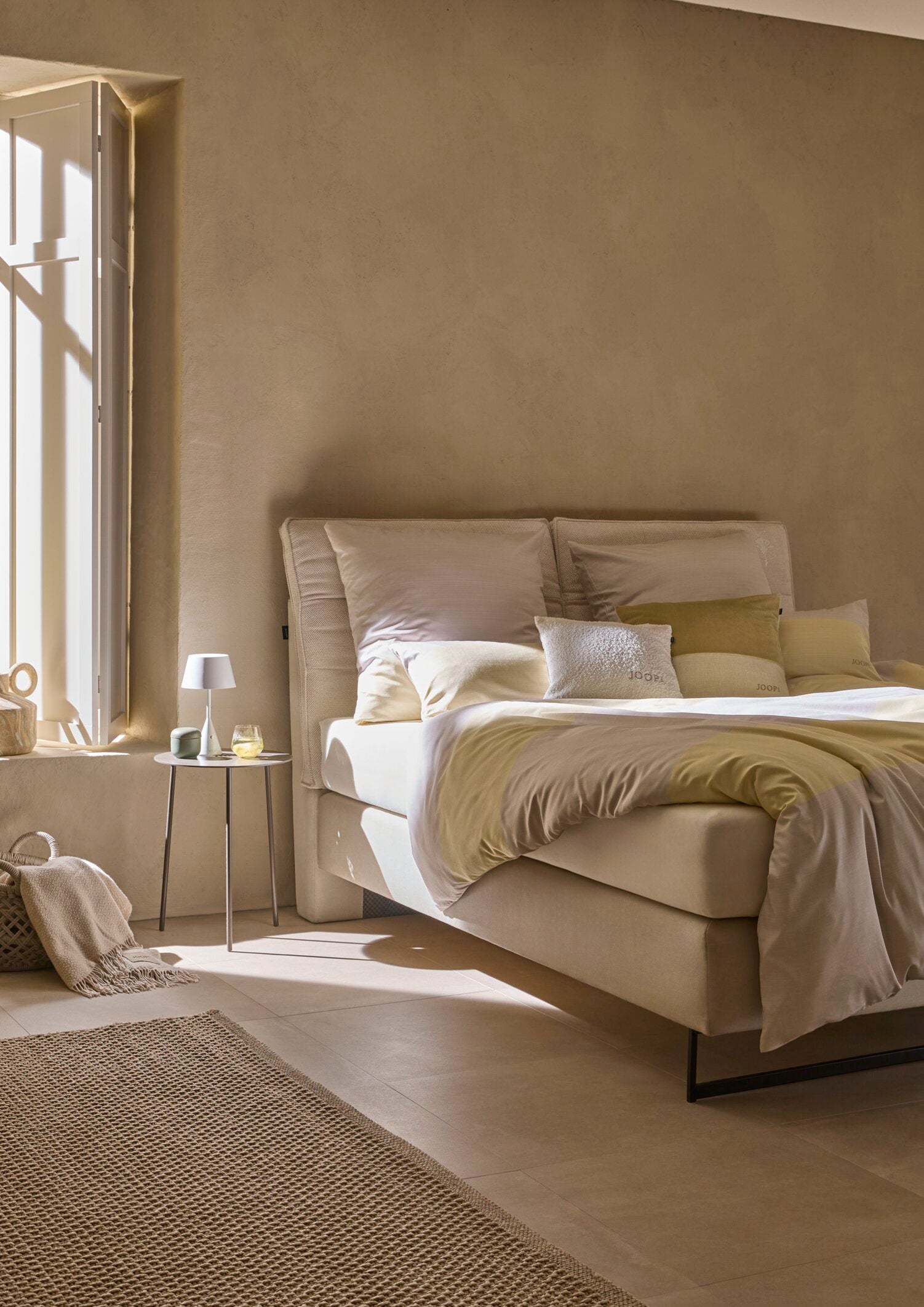 Modern Glamour auf den Punkt gebracht: Dafür steht JOOP! LIVING. Die Home-Linie des international bekannten deutschen Lifestyle-Labels JOOP! hat sich vom Anbieter luxuriöser Wohntextilien zur umfassenden Möbel- und Accessoire-Kollektion entwickelt, die hochklassige Produkte für nahezu alle Interior-Bereiche präsentiert. Vielseitige Möbel treffen auf dekorative Accessoires. Mal pur und minimalistisch, mal mit einem Hauch Extravaganz. Die Bereiche LIVING ROOM, DINING ROOM, BEDROOM und BATHROOM sprechen dieselbe Designsprache und verschmelzen zu harmonischen Wohnwelten. Abwechslungsreich akzentuiert durch die Farben, Muster und Trends der aktuellen Saison, die sich auf Dekokissen, Wohndecken, Tischwäsche, Bettwäsche, Frottier oder Badteppichen wiederfinden.