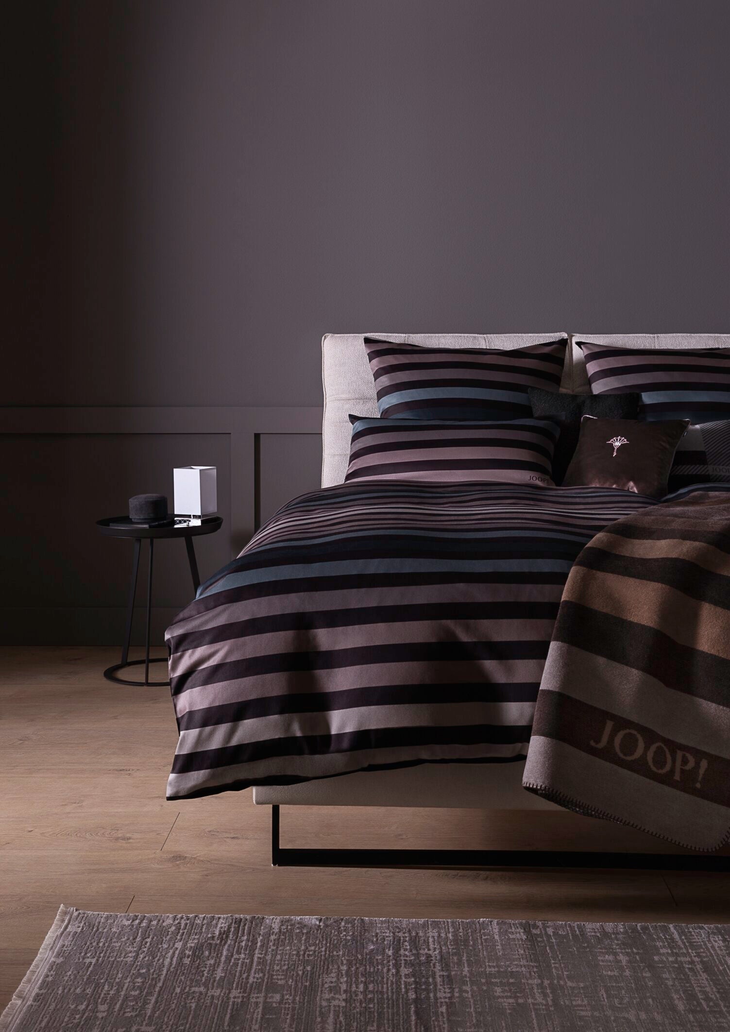 Edle JOOP! TONE Bettwäsche aus hochwertig verarbeitetem Comfort-Satin mit aussagekräftigem Querstreifen-Muster mit elegantem Farbverlauf. Die JOOP! Bettwäsche überzeugt durch ihre luxuriöse Qualität und ihr einzigartiges Design: Hochwertigste ägyptische Baumwolle bildet die Grundlage für die besonders feinen Garne, die zu seidigem Comfort-Satin verarbeitet werden. Nach verschiedenen Veredelungs- und Ausrüstungsschritten wird die Ware in Deutschland konfektioniert – in hochwertiger Verarbeitung, mit verdeckten, farblich angepassten Reißverschlüssen und anderen handwerklichen Details. Das fertig konfektionierte Produkt wird handgebügelt und dabei einer sorgfältigen Qualitätsendkontrolle unterworfen.