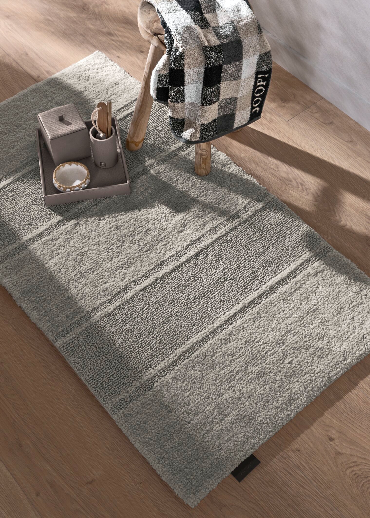 Flauschiger JOOP! VIBE Badteppich in unifarbener Optik mit dezentem Streifen-Design, beidseitig verwendbar, aus 100% Baumwolle. Das Must-have für den privaten Bad-Bereich: Die JOOP! Badteppiche sorgen mit niedrigem und hohem Flor für erholsame Wellness-Momente im eigenen Bad und komplettieren die persönliche Relax-Zone. Made in Germany überzeugen die Vorleger mit handwerklicher Präzision und der klassischen JOOP! Signatur.