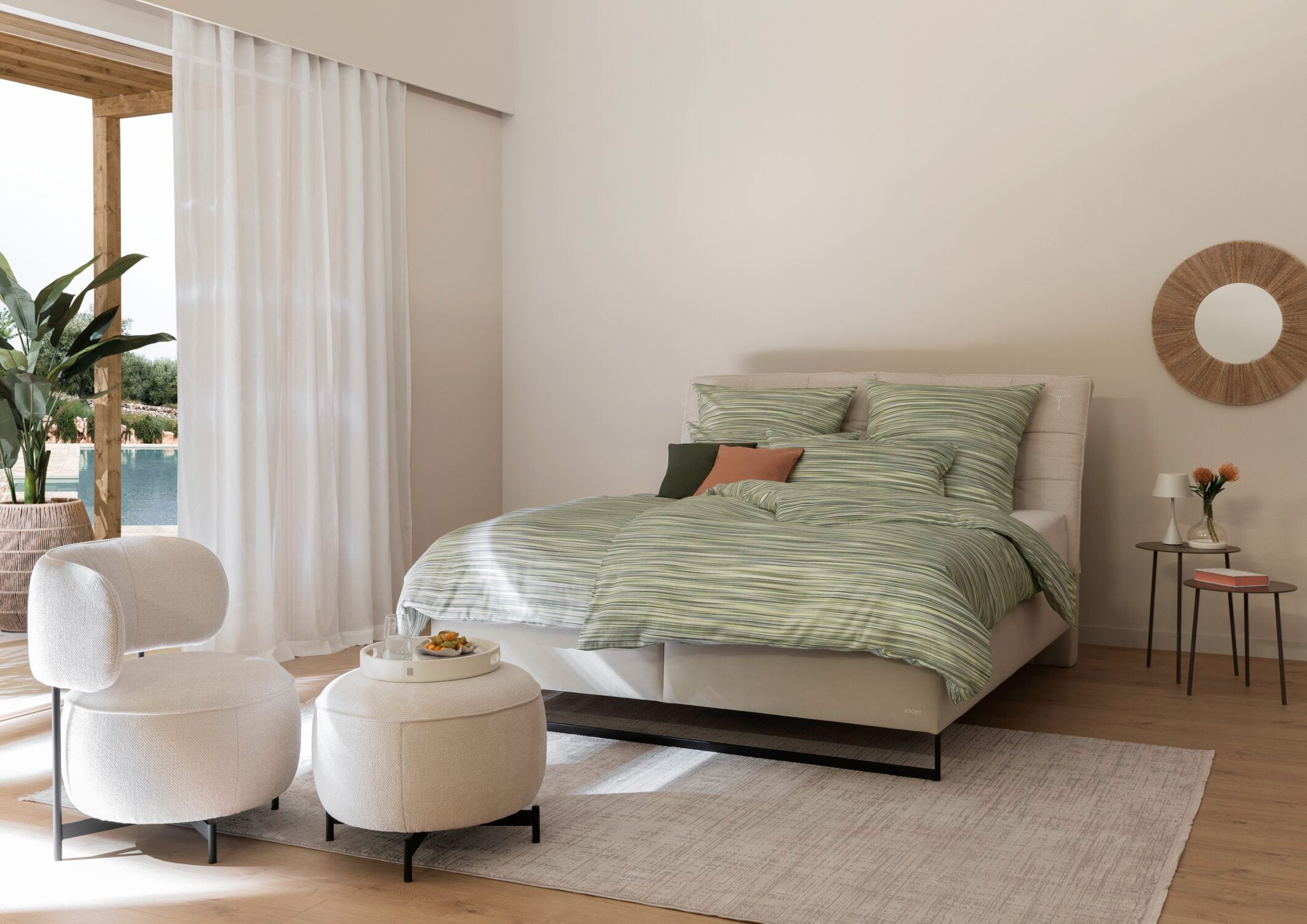 Modern Glamour auf den Punkt gebracht: Dafür steht JOOP! LIVING. Die Home-Linie des international bekannten deutschen Lifestyle-Labels JOOP! hat sich vom Anbieter luxuriöser Wohntextilien zur umfassenden Möbel- und Accessoire-Kollektion entwickelt, die hochklassige Produkte für nahezu alle Interior-Bereiche präsentiert. Vielseitige Möbel treffen auf dekorative Accessoires. Mal pur und minimalistisch, mal mit einem Hauch Extravaganz. Die Bereiche LIVING ROOM, DINING ROOM, BEDROOM und BATHROOM sprechen dieselbe Designsprache und verschmelzen zu harmonischen Wohnwelten. Abwechslungsreich akzentuiert durch die Farben, Muster und Trends der aktuellen Saison, die sich auf Dekokissen, Wohndecken, Tischwäsche, Bettwäsche, Frottier oder Badteppichen wiederfinden.